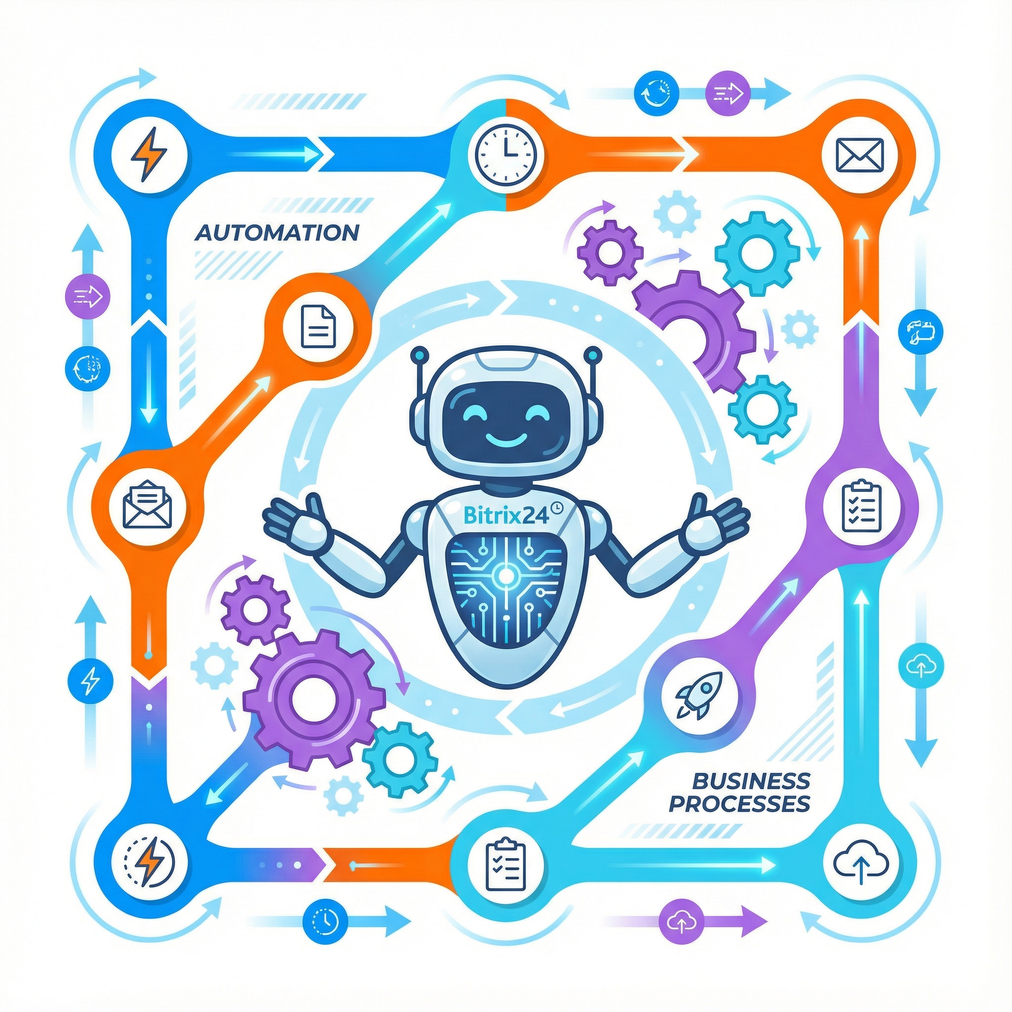 - Настройка роботов и триггеров для автоматического перемещения сделок, отправки уведомлений и постановки задач.